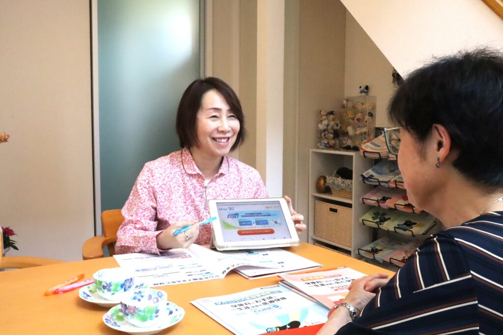 また、保険商品の説明や提案の際には、手書きで、内容用紙を一人一人に必ず、お作りします。お客様が納得し安心して、選択できるようサポートします。契約後も定期的にカレンダーお届けや電話などのアフターフォローを行い、お客様のライフステージの変化に合わせて保険内容の見直しを提案するなど、長期的な信頼関係を築いていくことを心がけています。