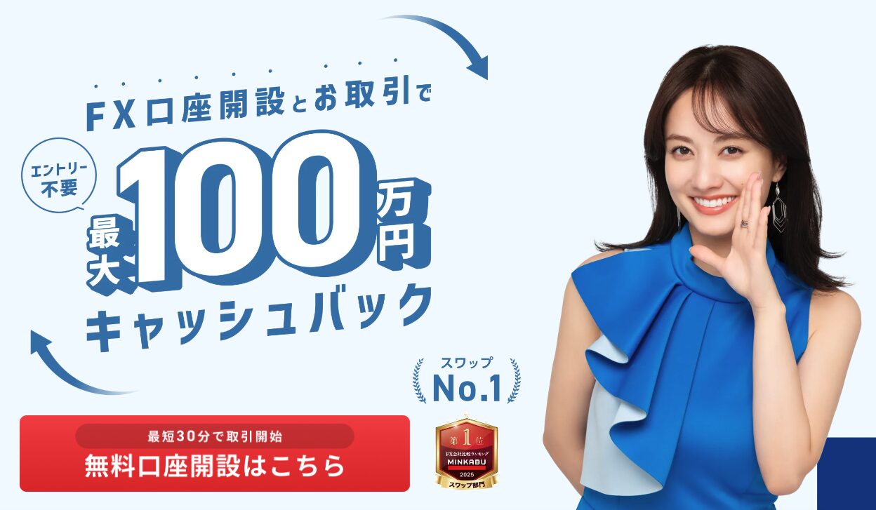 | 最大キャッシュバック | 最大100万円(200,000Lot以上) |