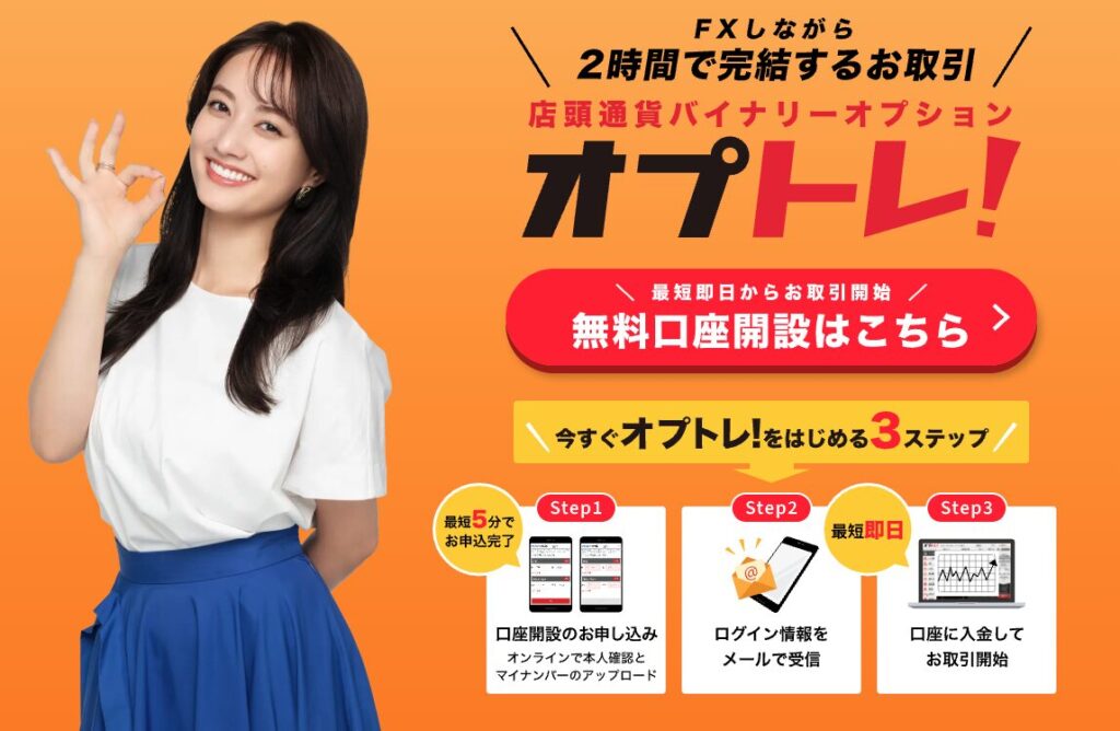 | レンジオプションの有無 | 相場変動が小さい時も利益を狙える。国内で取り扱いがあるのは「オプトレ!」と「みんなのオプション」のみ。 |