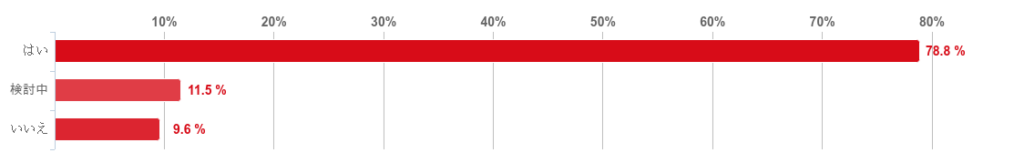 新NISA制度を利用しているかについて、「はい」と回答した人が78.8%と8割近くで圧倒的に多く、「検討中」との回答も11.5%で続き、新NISA制度を利用または検討している人が9割以上いることがわかった 。