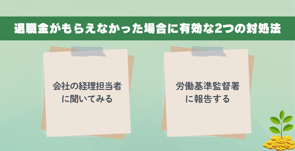 退職金の振り込みがない場合は、次の2つの方法で対処していこう。