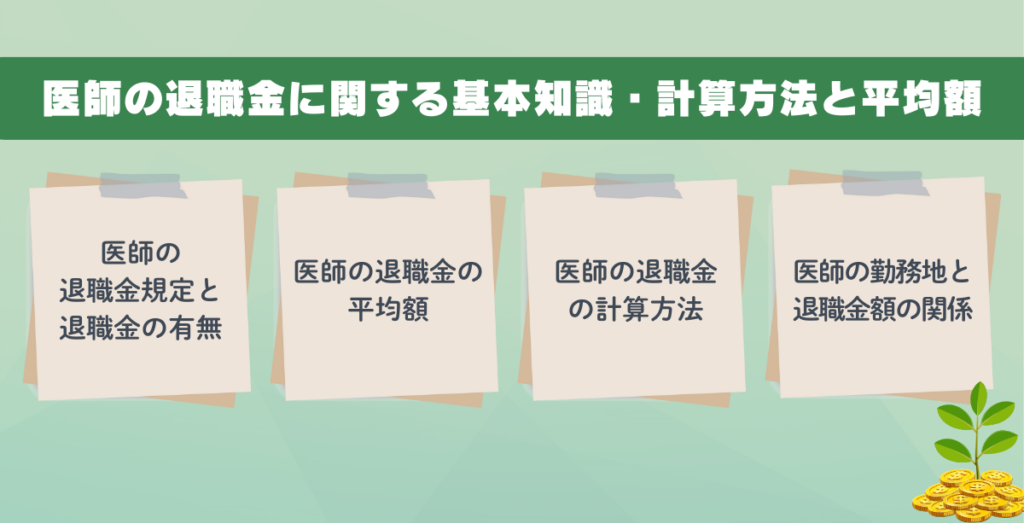 医師の退職金に関する基本知識を中心に解説していくので、退職金について理解を深めていこう。