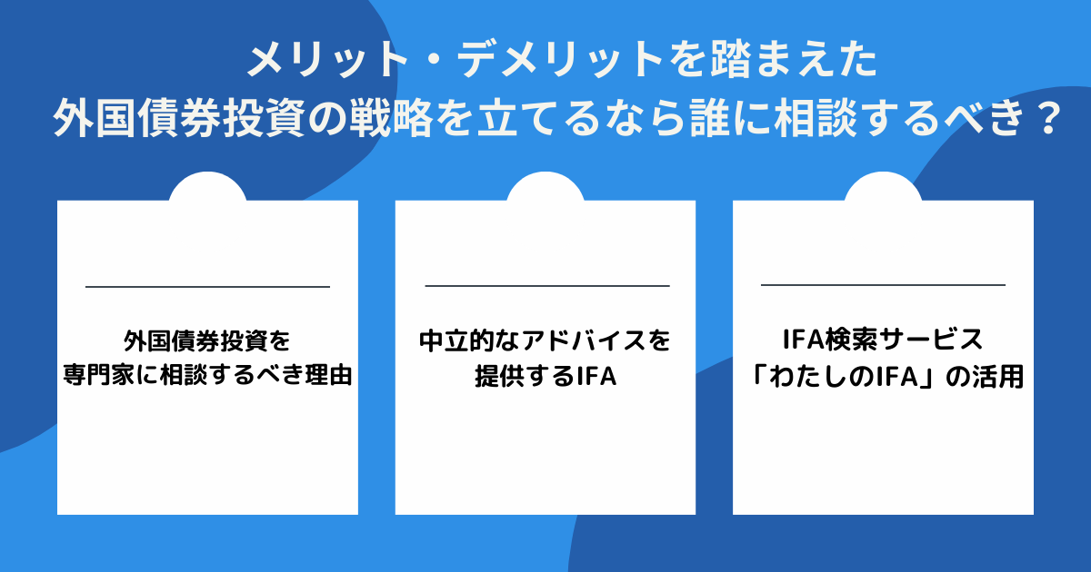 メリット・デメリットを踏まえた外国債券投資の戦略を立てるなら誰に相談するべき?