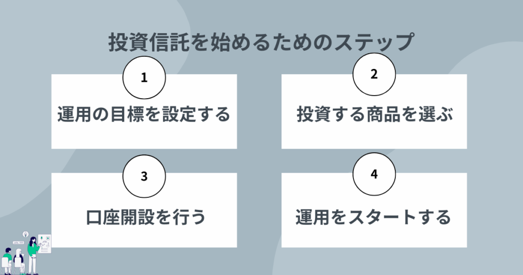 投資信託は、下記の4つのステップで始めることができる。