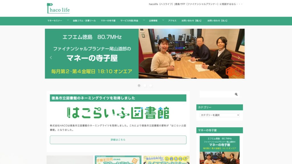 地元FMとくしまでラジオ番組「マネーの寺子屋」のコーナーを8年以上担当しており、また独自に女性向け・子育て世代向け・退職者向け・住宅ローン向け等、多彩なテーマのセミナーも開催している。