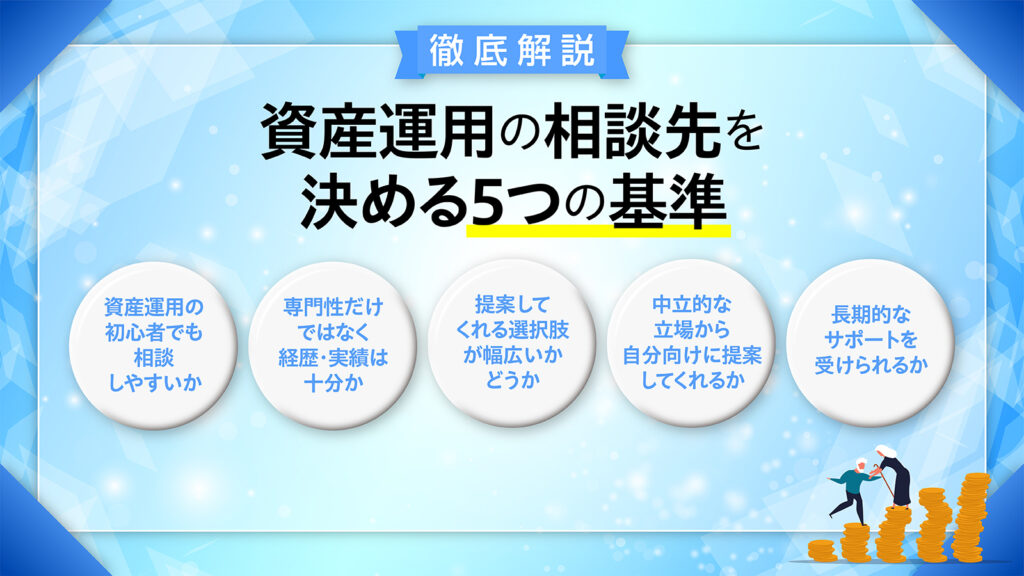 これから資産運用を始めようと考えている方や、投資について専門家からのアドバイスを受けたいと思っている方は、ぜひ参考にして自分に最適な相談先を見つけてほしい。