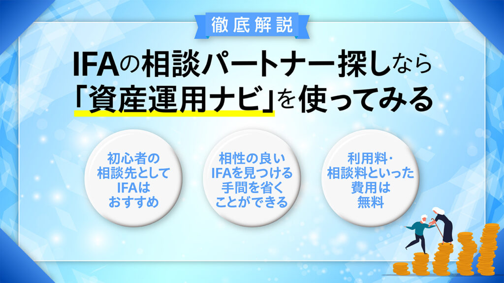 特にIFAは中立的な立場から提案でき、長期的に伴走してくれる点で初心者にも適している。