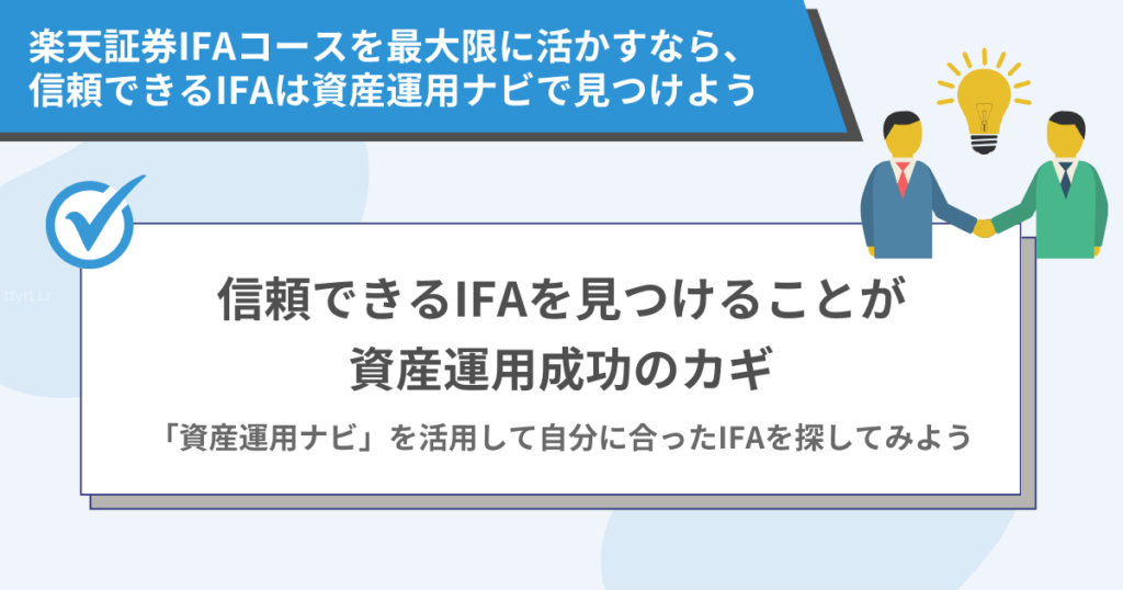 楽天証券IFAコースを最大限に活かすなら、信頼できるIFAは資産運用ナビで見つけよう