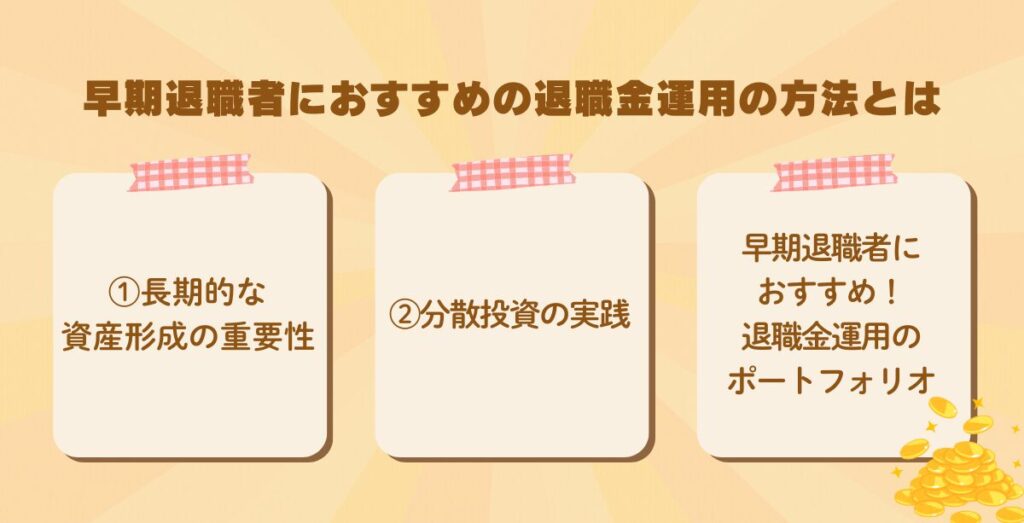 早期退職を検討している場合、退職金を活用して資産運用を行うことをおすすめする。