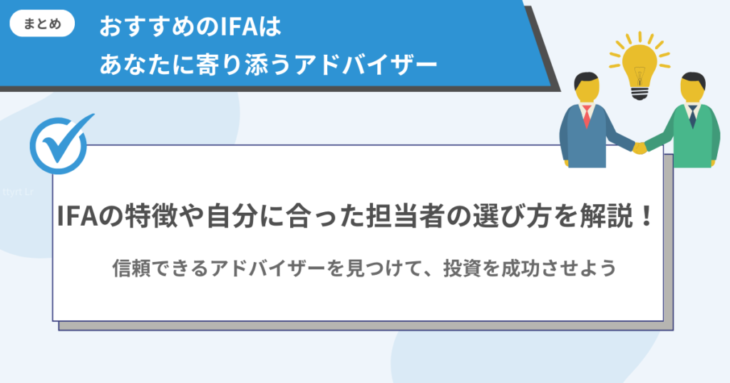 「おすすめのIFAが知りたい」「IFA選びで失敗しないためのポイントが知りたい」といったお悩みをお持ちの方には必見の内容である。