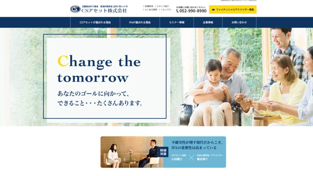 実際、同社のファイナンシャルアドバイザーは親会社の意向に左右されず「お客様本位」で行動することを徹底しており、金融機関の都合にとらわれない真に独立したアドバイスを提供している。