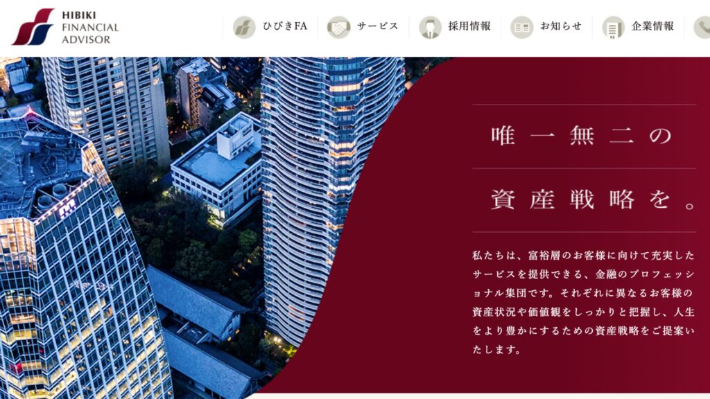 | ひびきFA | 楽天、日産、SBI、あかつき、東海東京 | 60 | 内部管理の堅牢さを重視し少数精鋭の提案を望む富裕層 |