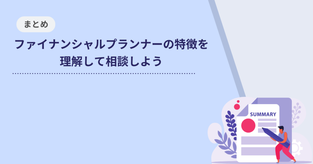 本記事で紹介したFP選びのポイントや相談を避けるべきFPの特徴を踏まえ、自分に合った相談先を見極めよう。