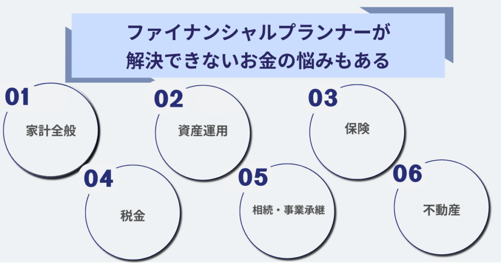 一方、悩みの種類によってはFP以外の専門家に相談した方が良いケースもある。