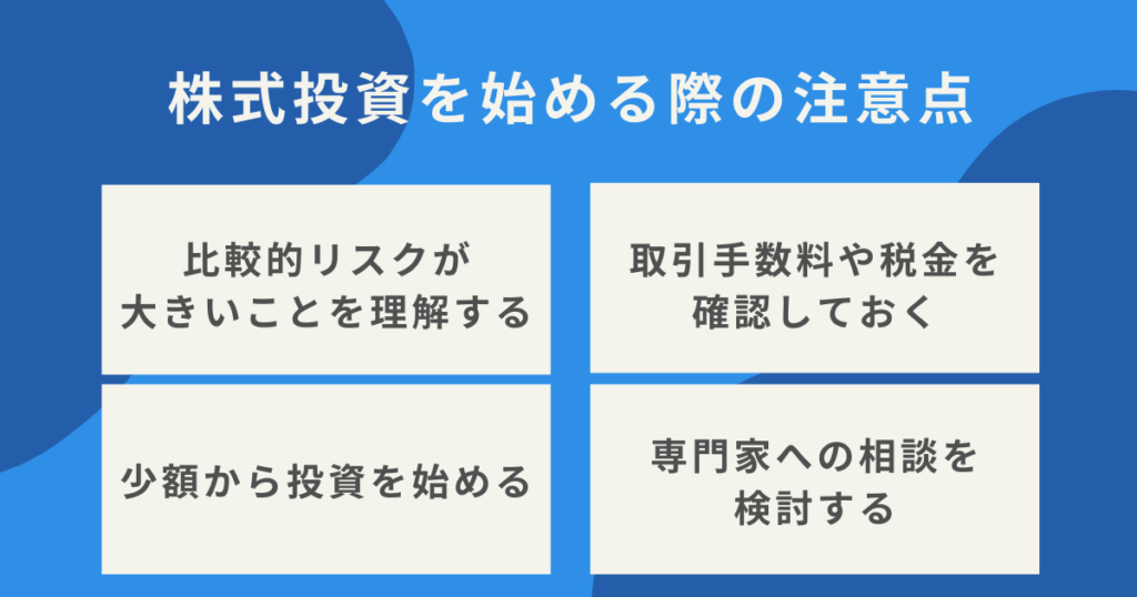 また、株式投資は価格変動のリスクが伴うため、余剰資金の範囲内で行うことが鉄則である。