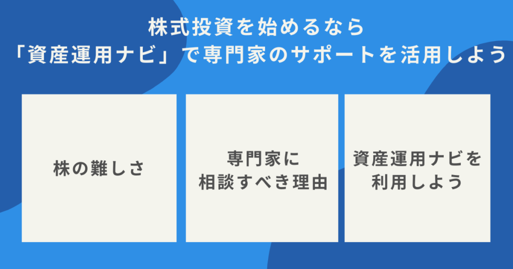ここでは、株を運用する難しさや専門家に相談すべき理由、「資産運用ナビ」の特徴について解説していく。